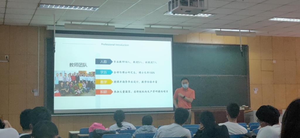 两位老师主要从专业简介、专业学习内容、就业方向和前景、考研方向、教研室介绍、专业特色等方面进行讲解。老师们用图片展示的方式向同学们介绍了各个专业在生产生活中的应用,使同学们对将来就业范围及可选工作有所了解。另外,为了增强同学们学习的信心,老师们展示了近三年成人直播