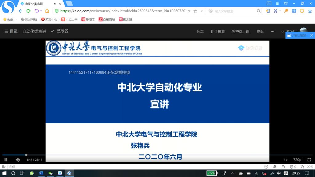 召开了自动化类专业分流线上宣讲会。本次会议由自动化系系主任张艳兵老师和交通工程系系主任贾建芳老师担任主讲。会议通过腾讯课堂在线进行,成人直播