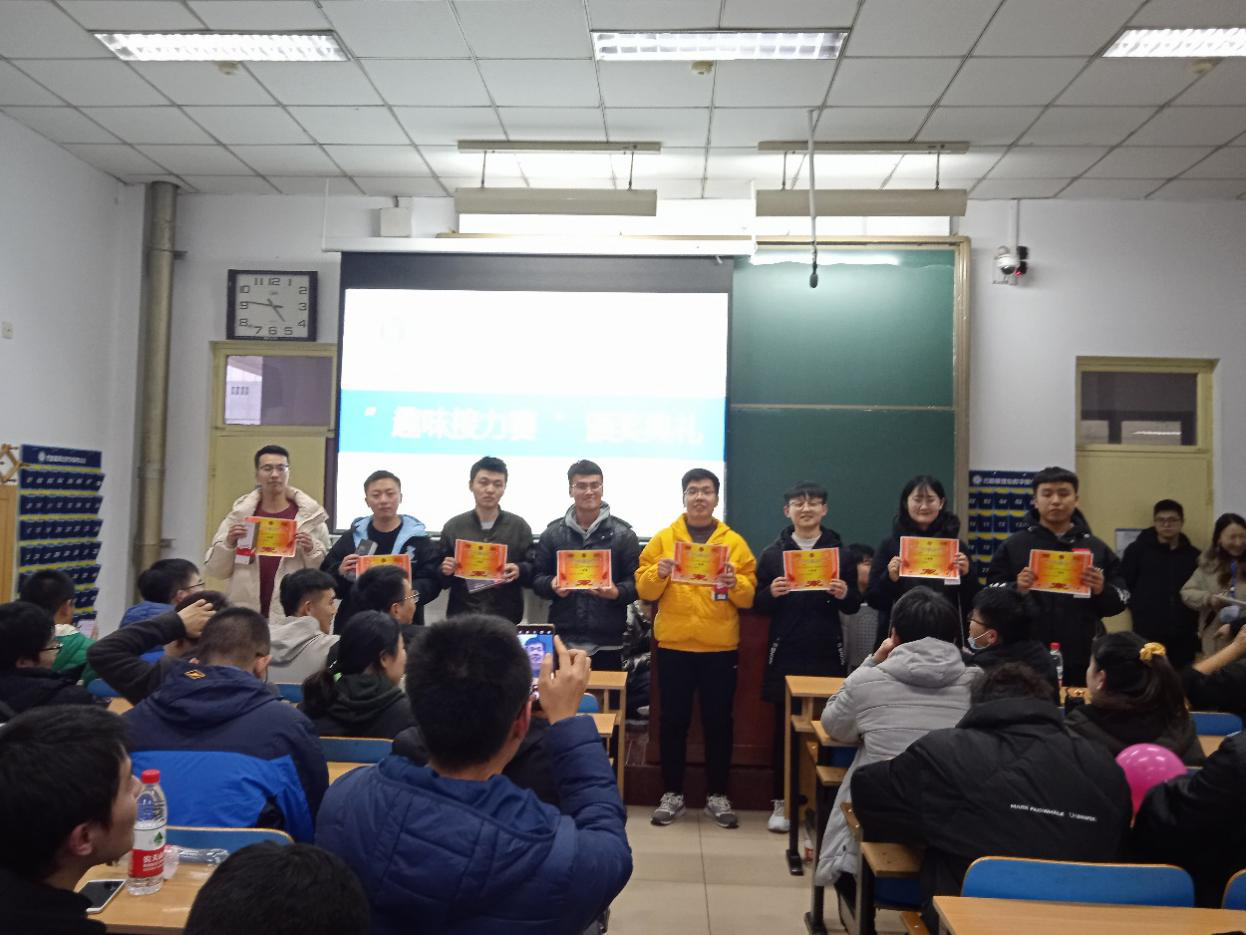时间悄悄流逝,寒意逐渐袭人,大家顺利地完成了所有的游戏项目。最后通过计算、汇总每个比赛的分值,分出了一等奖、二等奖、三等奖和优秀奖,由院研究生会为获奖队伍颁发了奖状,运动会圆满落幕。
