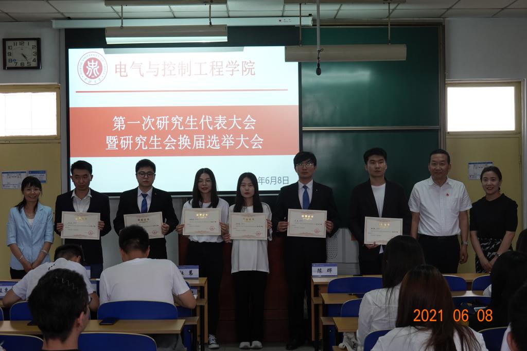 研究生代表大会代表3名,顾春茂、赵夏青、刘文海,学院研究生会主席团成员2名,闫伟、陈敏。接着,陈书记、杜书记和李老师对在研究生会工作中做出贡献的李顺、冯宇君等六名同学颁发了“优秀干部”荣誉证书。