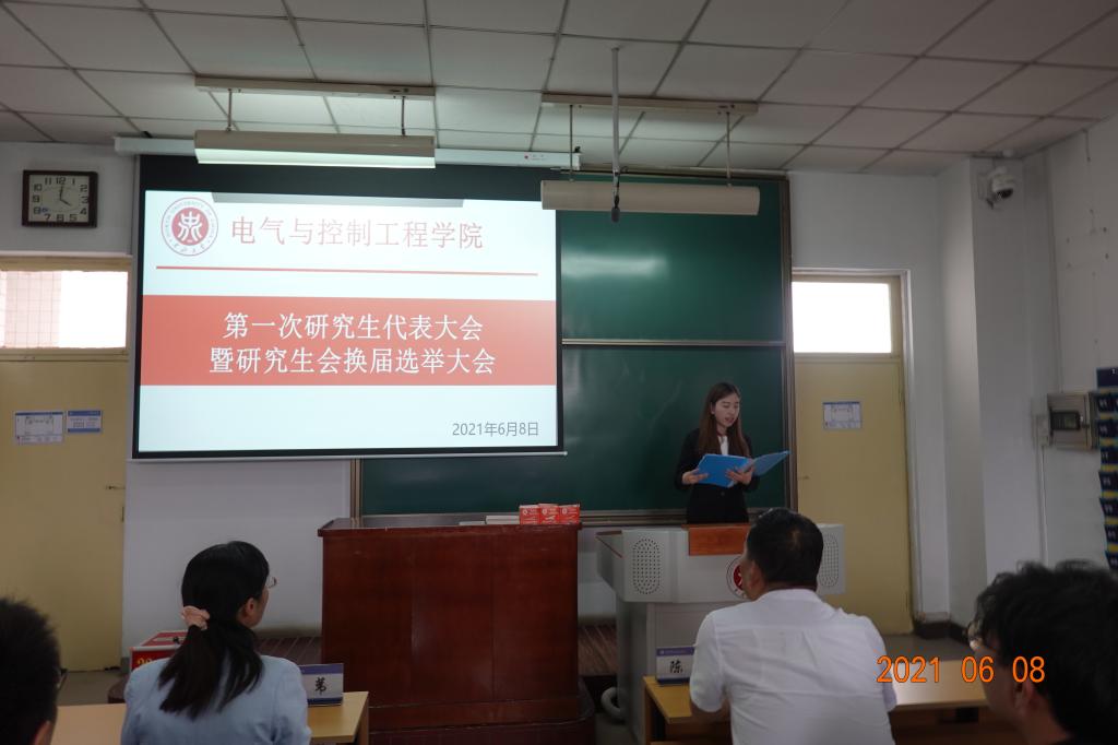 在11316T教室召开第一次研究生代表大会暨研究生会换届选举大会。出席本次大会的嘉宾有学院党委书记陈晔、党委副书记副院长杜苇、研究生辅导员李婷以及40名研究生代表。大会由Y201502班团支书潘丽同学主持。
