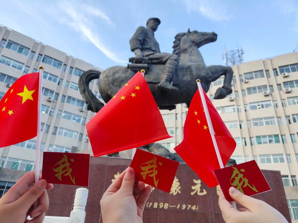 借着傍晚清凉的风,同学们缓缓而行,漫步在中北的大道上。每个人脸上都洋溢着幸福的笑容,他们富有朝气的面庞,使手中的五星红旗彰显得更加辉煌!他们欢声笑语,侃侃而谈,怡然地欣赏着路边的景色,时不时地拍照留念,记录着这充实而难忘的一天。他们所走过的每个地方,都留下了青春的乐章,这也是每个人与中北的故事。