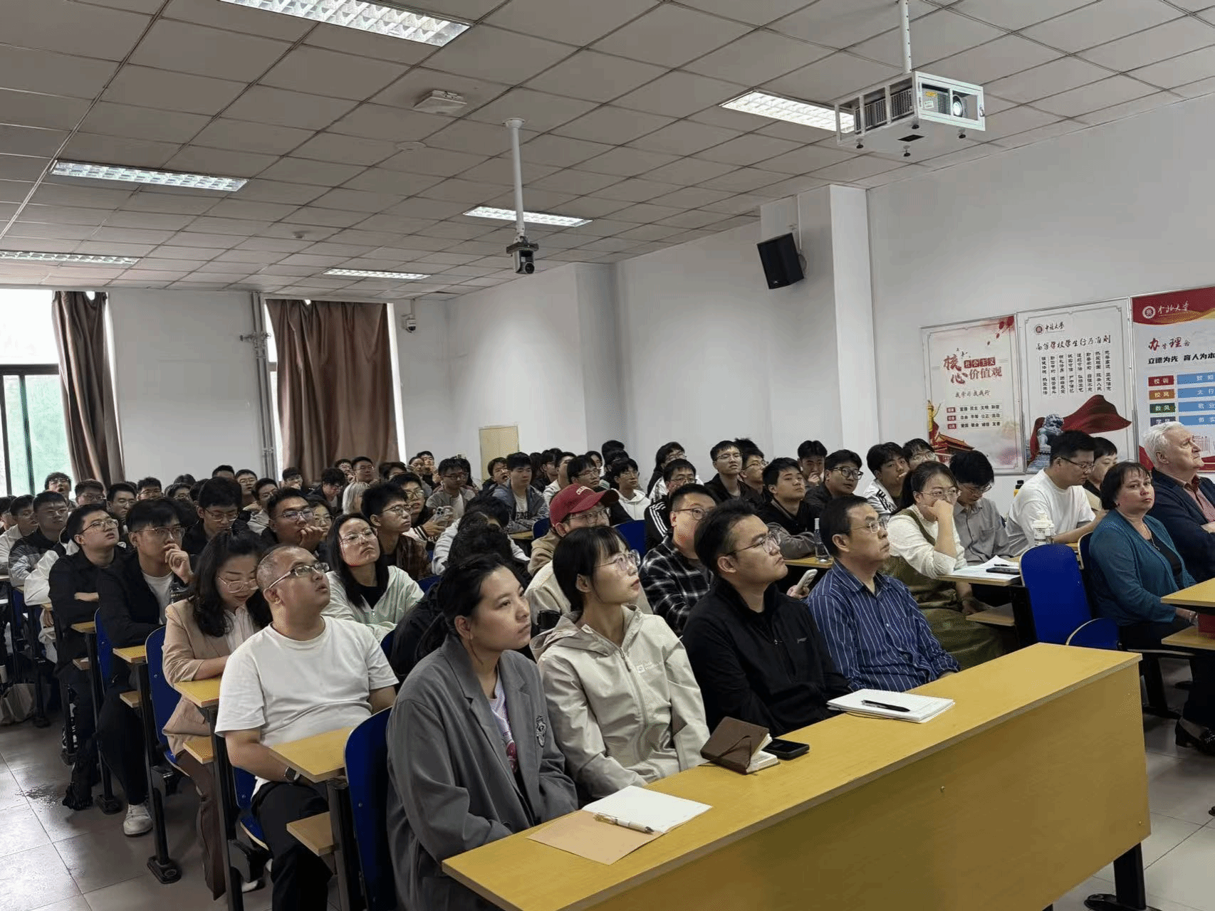讲座过程中,切比仁科教授展示了无人机蜂群控制系统的应用前景,提出了其在实际操作中如何减少对人员的依赖,实现完全的自动化和无人化作业。他的精彩讲解引发了同学们的热烈讨论,大家纷纷表示对无人机蜂群技术有了更深入的了解,并激发了对无人机应用研究的兴趣。