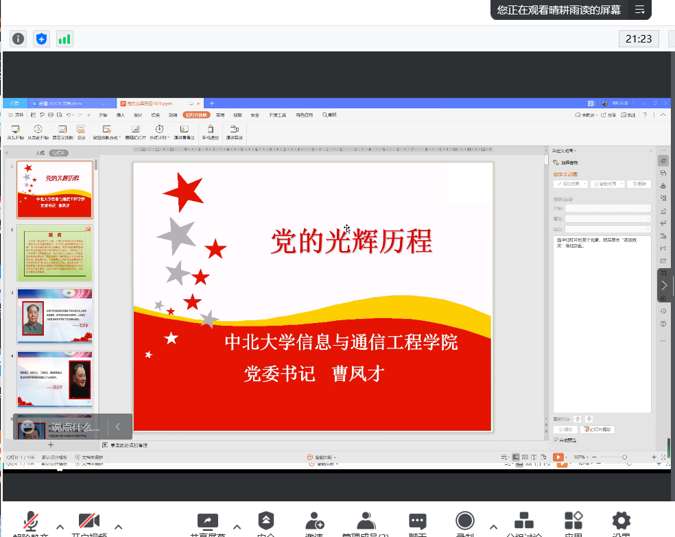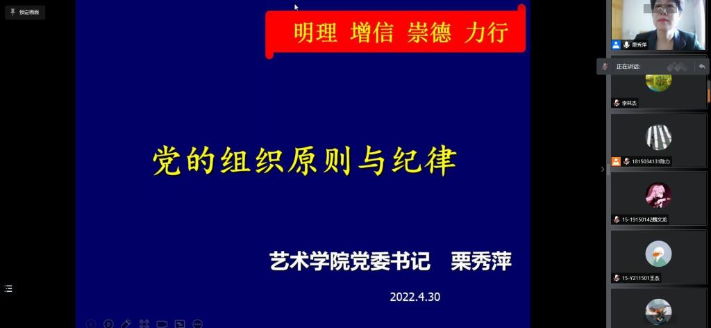 第十一期入党积极分子培训班通过腾讯会议方式举行。本次院党课由艺术学院党委、马克思主义学院党委和成人直播