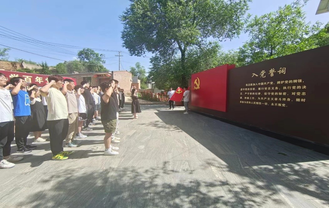 习近平总书记强调,“革命博物馆、纪念馆、党史馆、烈士陵园等是党和国家红色基因库。要把红色资源作为坚定理想信念、加强党性修养的生动教材”。作为解放太原战役的支前模范村,店子底村有着丰富的红色文化和红色基因。店子底支前纪念馆是根据解放太原战役中阳曲老区人民踊跃支前的光荣历史,在店子底村创建的以革命传统教育为主题的教育基地。在店子底村支前广场,全体党员同志重温了入党誓词。