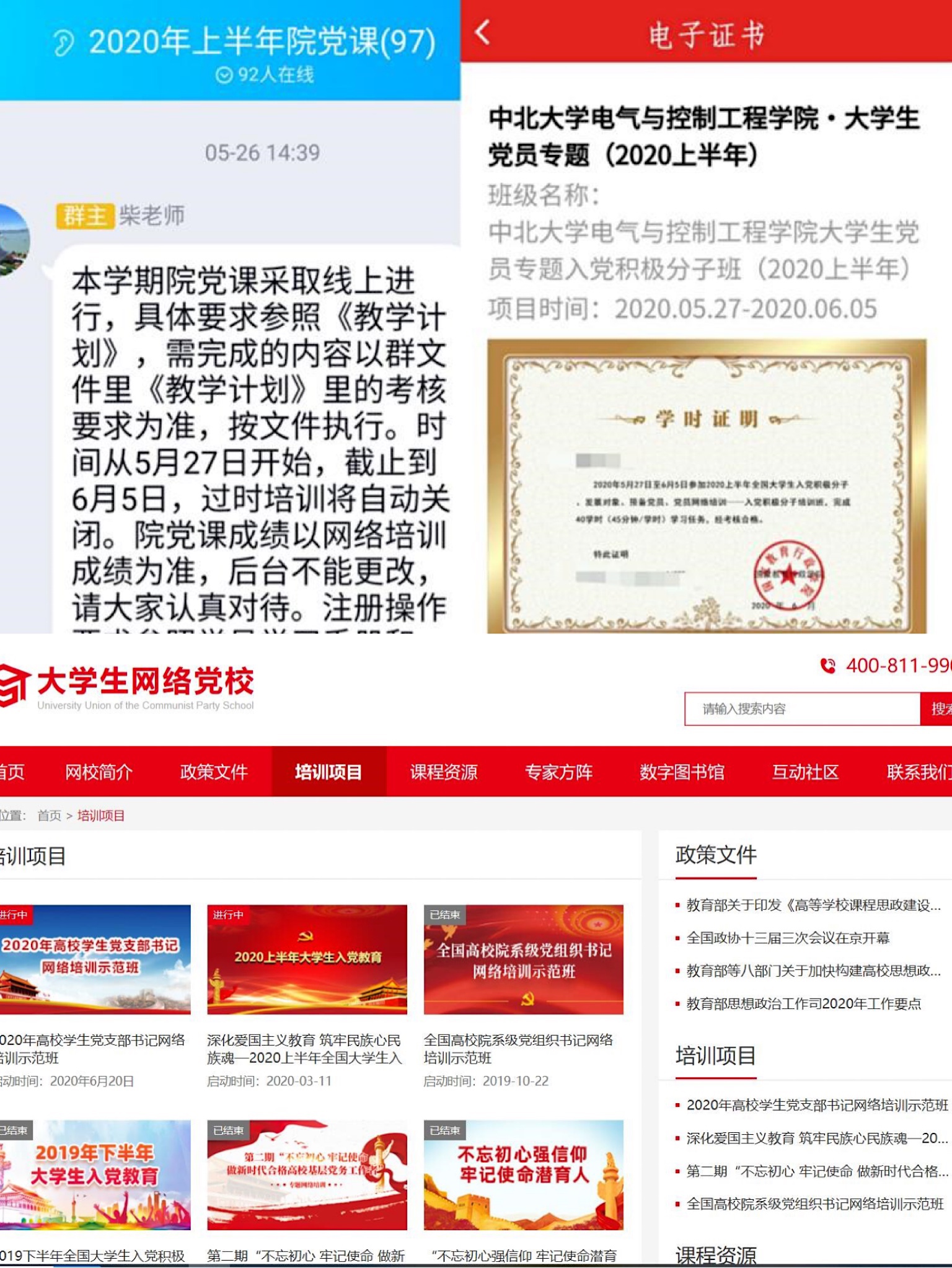 线上组织开展了第六期入党积极分子培训班,培训依托国家教育行政学院大学生网络党校平台组织实施,为期十天,分课程学习、交流研讨、撰写思想汇报、在线考试四个环节。
