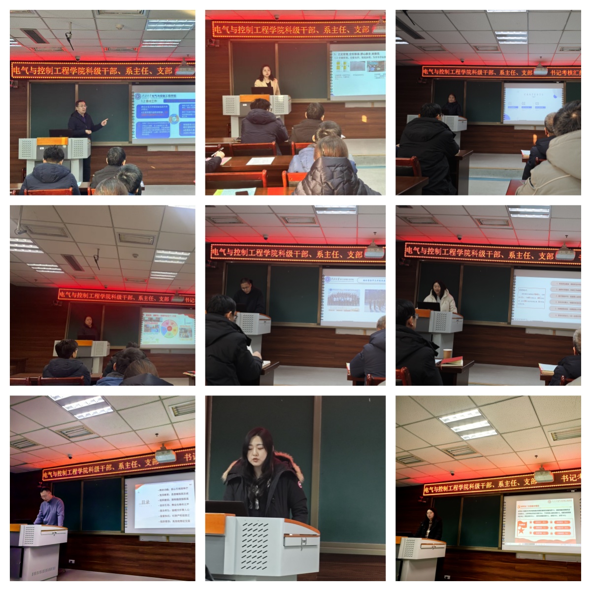 学院5个科室共6位科级干部分别围绕2024年度工作的完成情况、创新工作以及2025年提质增效计划进行了述职。自动化系、电气工程系、智能工程系、交通工程系的系主任依次围绕以本科教学位核心开展的教学研究、师资培训、双创竞赛、校企合作等方面进行汇报。在11位支部书记书面述职的基础上,抽取了教职工第一党支部、电气工程及其自动化专业学生党支部、自动化专业学生党支部、研究生第二党支部及第三党支部共5位党支部书记聚焦支部强基、“五结合”“五个一”特色党建、提质增效计划进行现场述职。现场的气氛向上而热烈。