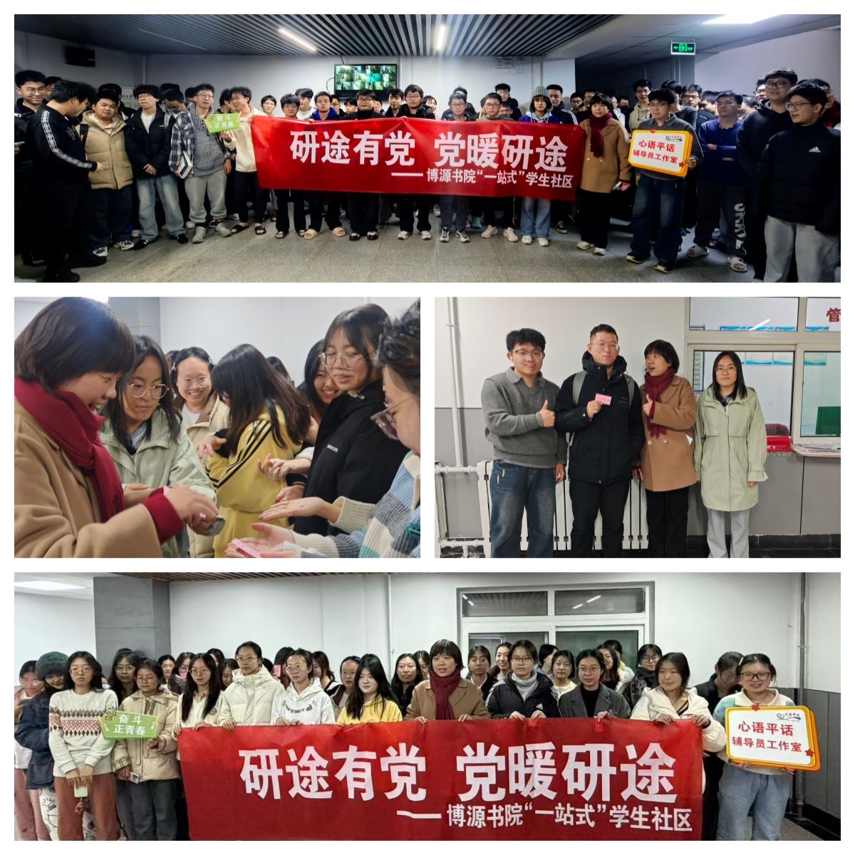 将党建思政工作下沉到学生社区的品牌工作。学院以博源书院“一站式”学生社区为平台,于12月5日至7日举行“研途有党 党暖研途”助力考研学子活动,为进入考研冲刺的学子们送上冬日的温暖与祝福。