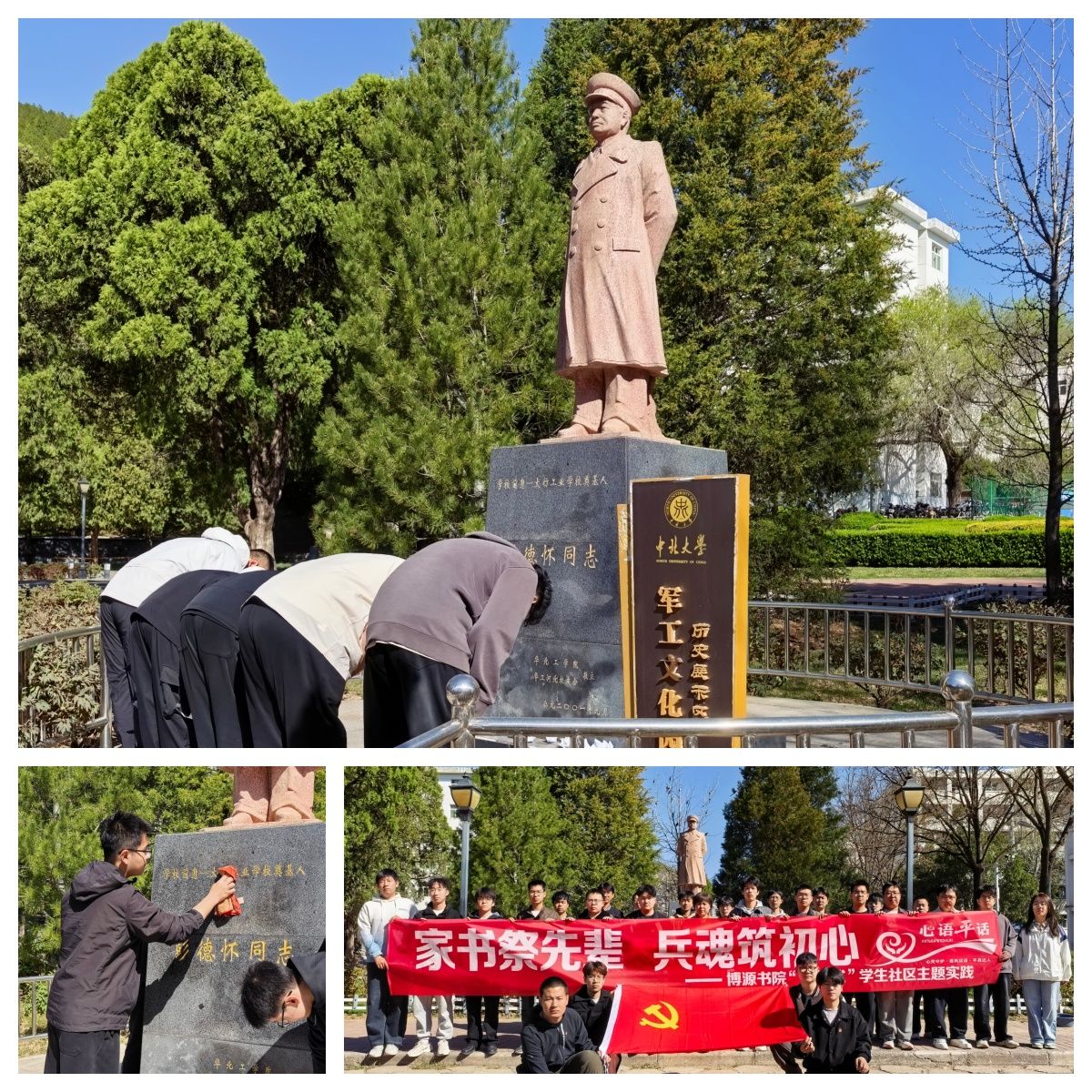 办学发展史,深情解读了刘鼎校长深耕人民兵工事业的坚守与担当,让一封封泛黄的家书成为鲜活的党史、校史教材,让师生们深刻读懂兵工初心的厚重内涵与精神力量。接力诵读环节,同学们的兵工誓言,字字皆是庄重承诺与担当;青春寄语环节,师生们在便签上写下缅怀话语与青春报国誓言,将对先辈的追思化为奋进动力。志愿实践环节,大家心怀敬意,细心擦拭雕像、清理周边环境,以实际行动致敬先辈。