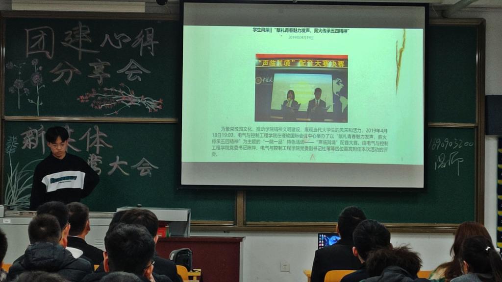 会议伊始,优秀团支书代表唐容容首先向学子们分享了团日活动以及答辩相关经验,介绍了团日活动中的教育活动,科技活动,公益活动,组织活动,文娱活动,体育活动相关内容,并对大一团支书日后的工作寄予了很高的期望。紧接着,优秀团支书代表温昕介绍了团日活动的美好经历和团支部建设相关心得。赢得了在场各班代表的热烈反响,为新生与大二各班组织团建活动提供了方向与优秀榜样。会议休息过程中,抽奖,艺术表演为此次活动增添了不少色彩。最后,新媒体优秀学生代表,陈展、浩泽分别向学子们展示了新媒体运营的运行程序,分享了新闻稿写作经验与方法。陈展学长强调微信运营的关键在:帮“哪些用户”在“什么场景”解决“什么问题”。他解释道:写好一篇文章首先要弄清面向的群体,一篇文章的百分之八十都靠选题。浩泽学长通过一篇篇图文并茂的新闻稿,介绍了新闻稿的概念、要素及成分,并重点说明了新闻稿的时效性和标题的重要性。