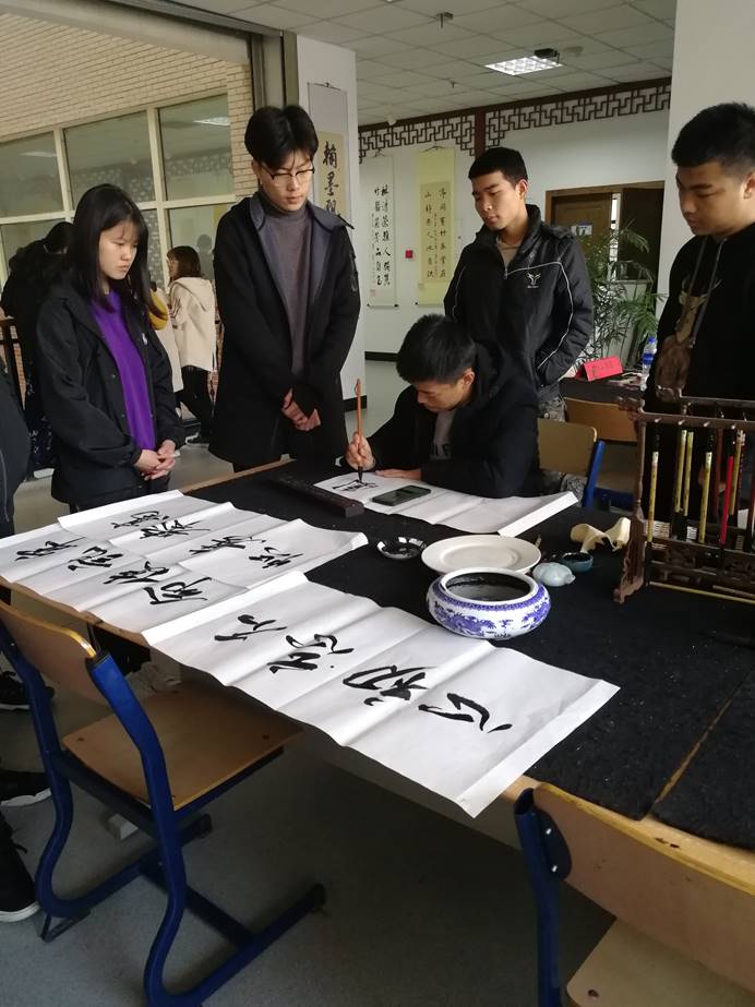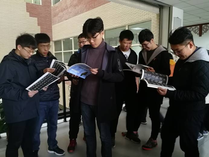 119日上午10点,17150242团支部代表准时到达活动地点,经过书画社同学简单介绍后,大家对传统的书法的认识更上了一个阶梯,我们在书画社的成员带领下,参观了耕砚书画社的作品。在参观中,大家对传统的书法知识及书画作品产生了极大的乐趣。
