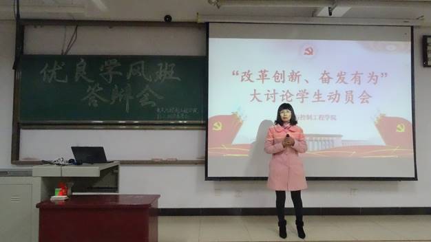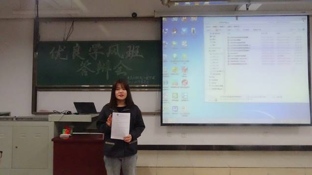 此次答辩共有十一个班级参加,答辩伊始,杜苇书记上台致辞,表达了对各班的赞扬和期望。随后各班代表依次上台,积极发言,从各个方面展示了自己班级的学风建设情况,他们出彩的表现赢得了评委们的一致称赞和现场的阵阵掌声。评委从班级思想建设情况、制度建设情况、班级代表答辩情况、答辩材料准备情况四个方面对11个班级进行打分,充分肯定了各班的学风建设活动的成果。最后,薛艳霞老师为本次答辩进行了总结发言,鼓励各班再接再厉,再创新高。