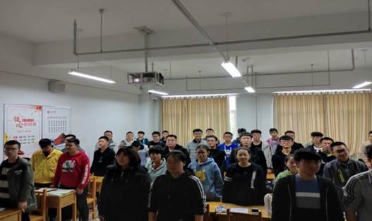 首先全体师生齐唱校歌,在悠扬雄浑的歌声中,同学们领略了军工文化和太行精神;接着张老师给同学们讲了学校的历史沿革、太行精神、我校参与研制的武器设备及科研成就与国防安全,最后还倡导同学们勇于担当时代大任,做敢为人先的新时代青年。接下来是同学们观看新中国成立70周年的的光辉历程、建党建国和社会主义建设中涌现出来的典型事迹和先进人物视频。最后同学们以歌曲《我和我的祖国》结束此次班会。