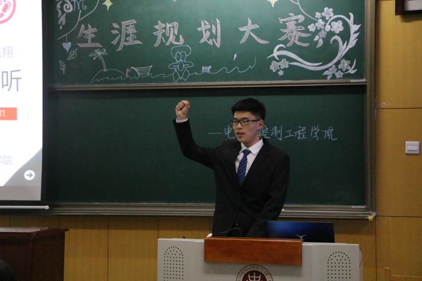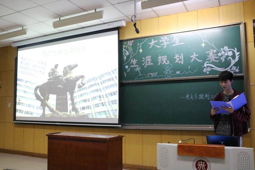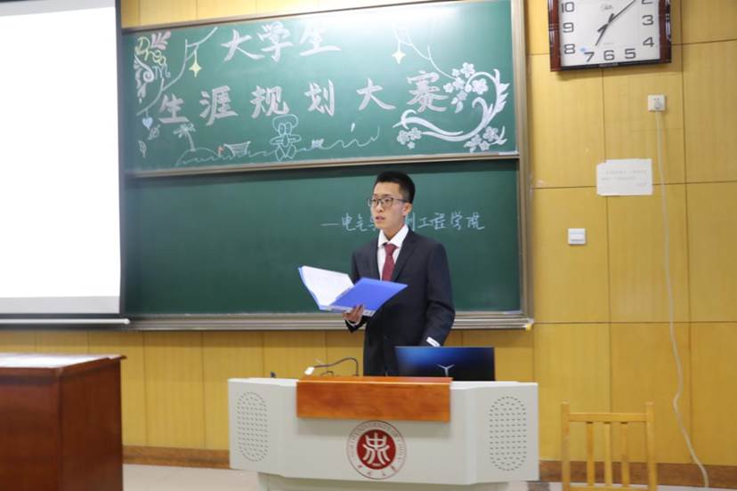 本次大赛由12名来自不同班级的同学依次上台讲解自己的生涯规划,并且由各位评委对其进行打分,得分前六位的同学将会得到由电气与控制工程颁发的荣誉证书。
