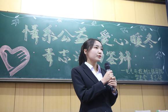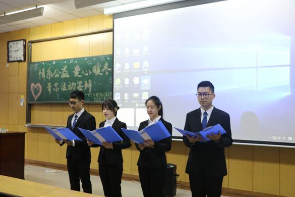 随着诗歌《青年志愿者之歌》的朗诵,本次活动正式拉开序幕。首先,主持人向在场嘉宾和各班答辩人员介绍了答辩形式,相关事项以及评分细则。各青志队用PPT、视频、文档多种形式向在场嘉宾介绍了自己班级的活动特色。大家也跟随着他们一起感受到了烈士陵园的肃穆,领略了二龙山、暮云山的风采,体会到养老院、幼儿园中的社会关爱........ 这些活动充分提现了“情系公益,爱心暖冬”的活动主题。