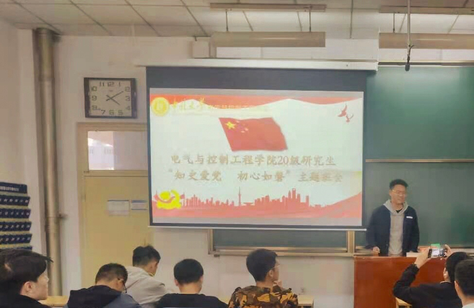 于2021年3月24日下午16:00在11306H教室召开“知史爱党 初心如磐”主题班会,会议由Y201501班班长翟泰淞主持,全体研一学生参加。
