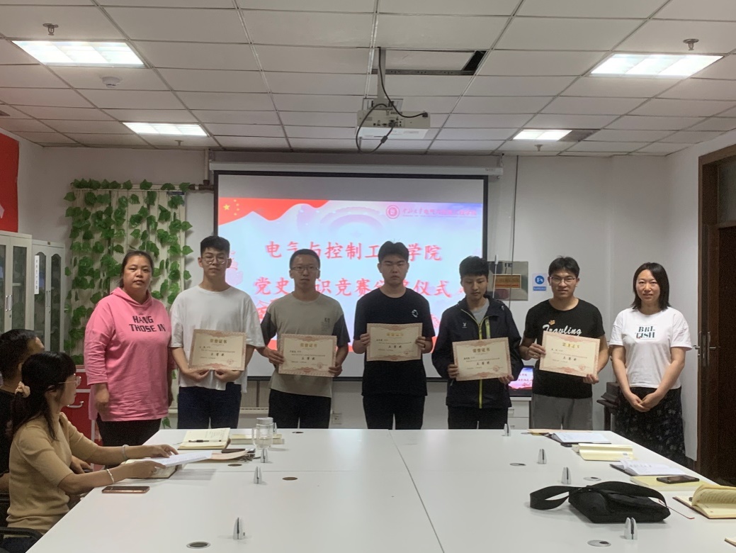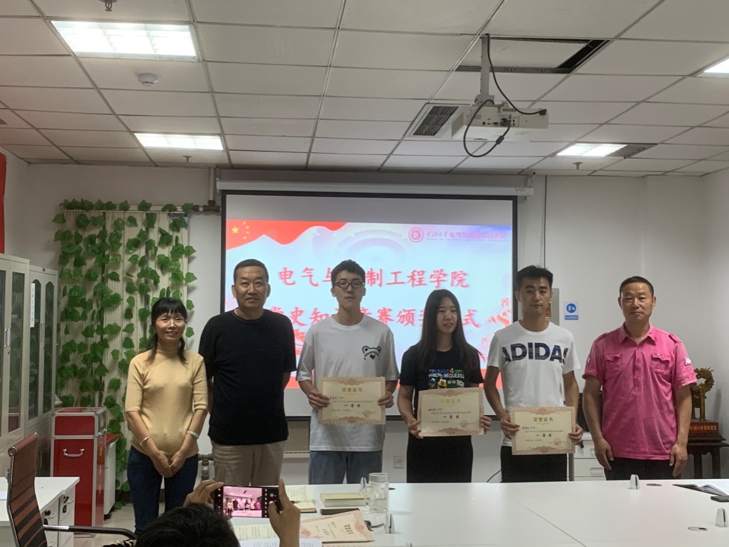 举行了党史知识竞赛颁奖仪式,院领导、党委委员和支部书记参加了此次仪式。仪式由院党委副书记杜苇主持,院党委委员和支部书记为获奖的同学颁发了荣誉证书。
